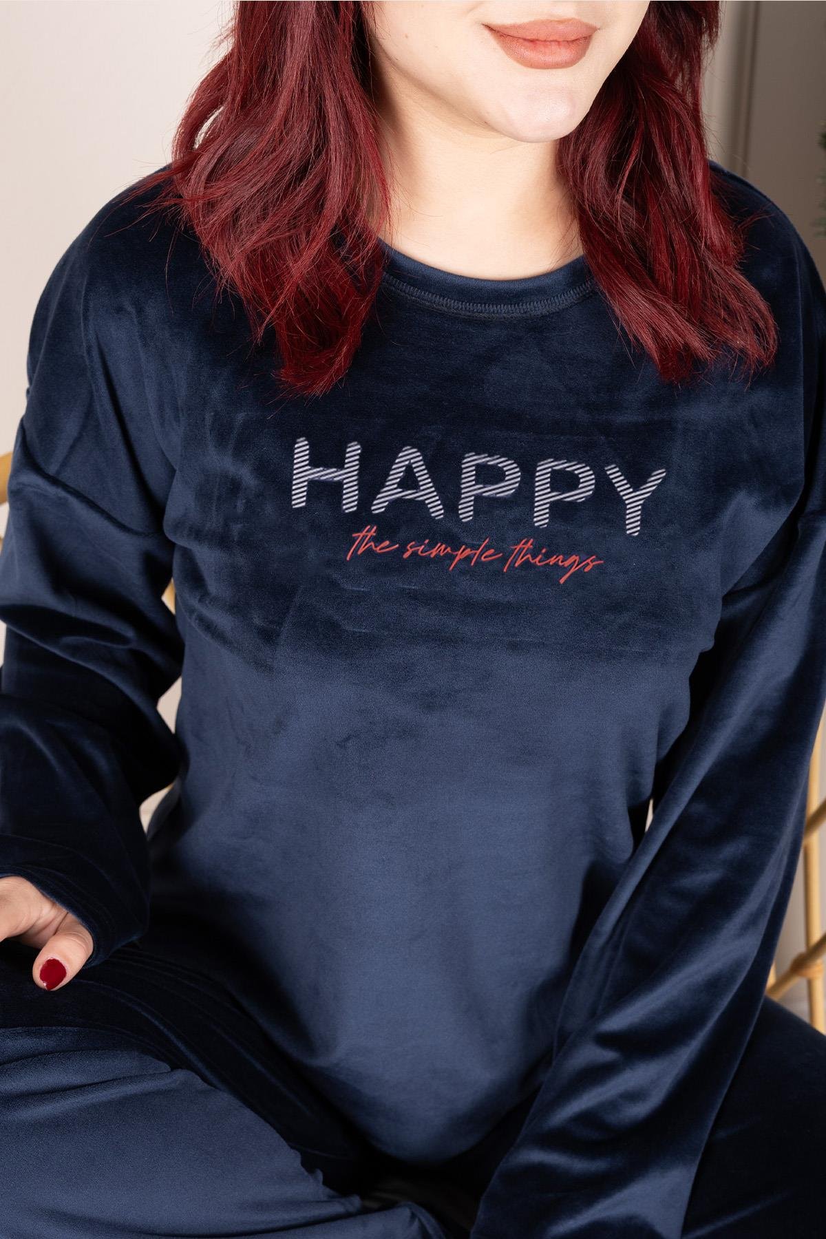 مجموعة بيجامة مخملية أنيقة ومريحة بأكمام طويلة من Niketlife Home Clothing مع شعار Happy تجمع بين النغمة النبيلة للون الأزرق الداكن مع شعار "Happy" النشط. بفضل ملمسه المخملي الناعم، فإنه يبقيك دافئًا في الأيام الباردة ويوفر لك الراحة طوال اليوم. بفضل تصميمه بأكمام طويلة، يعد خيارًا مثاليًا للارتداء المنزلي لمن يبحثون عن الأناقة والراحة.
