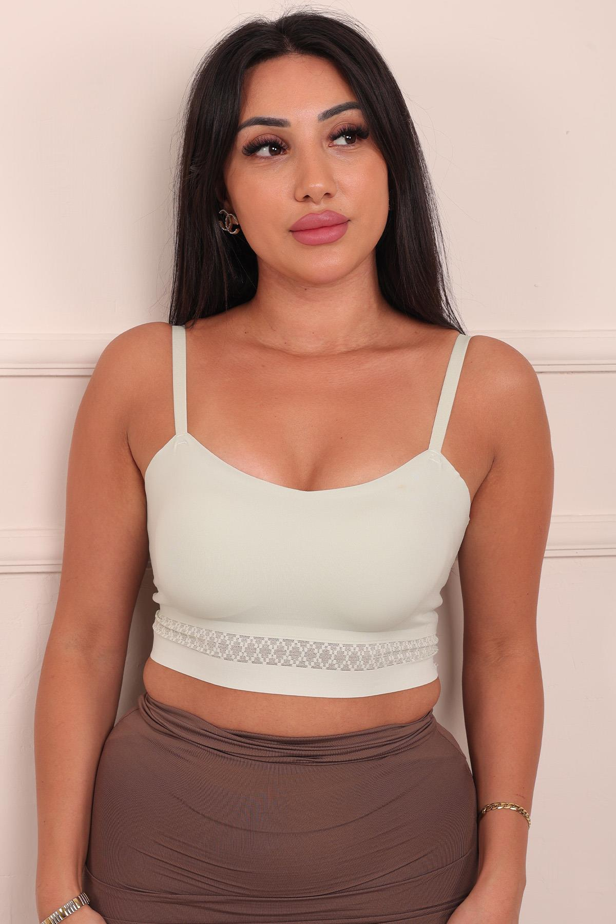 Dikişsiz Balensiz İnce Pedli Tül Dantel Belli Düz Kesim Bralet AÇIK YEŞİL (N.LIFE-6135)