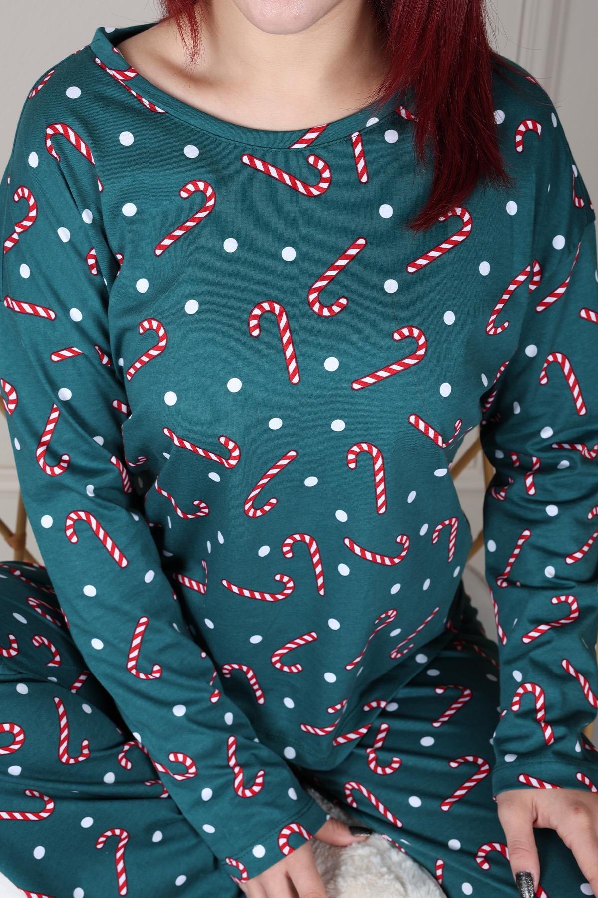 Niketlife Ev Giyim's fun and comfortable Candy Cane Patterned Long Sleeve Pajama Set brings together the refreshing tone of green with cute candy cane patterns. With its soft texture and long-sleeved design, it keeps you warm on cold days while providing a stylish and comfortable sleeping experience.