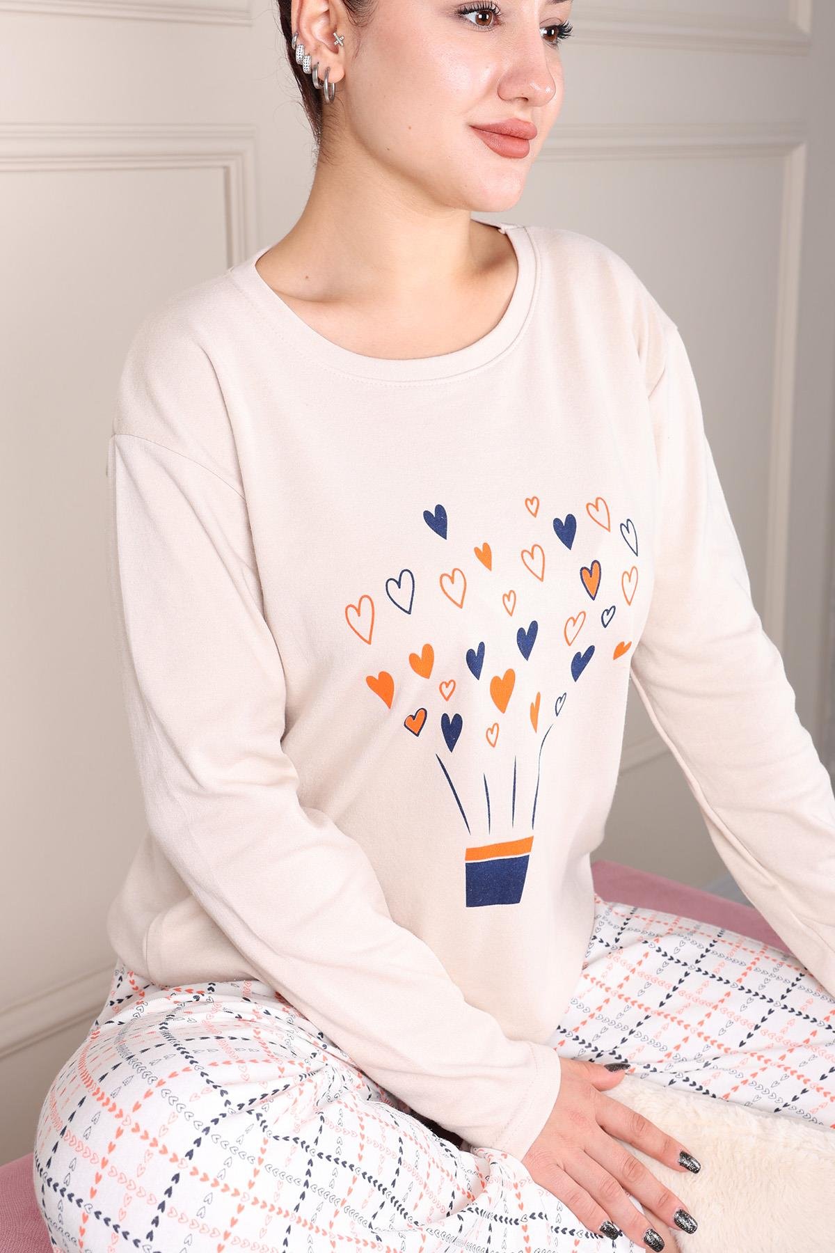 Niketlife Home Wear's elegant and comfortable Heart Patterned Long Sleeve Interlock Pajama Set combines the simple elegance of beige with cute heart patterns. Thanks to its soft interlock fabric, it provides comfort by keeping warm on cool days, and offers both comfortable and stylish use at home with its long-sleeved design. An ideal choice for those looking for both a peaceful sleep and a sweet style!