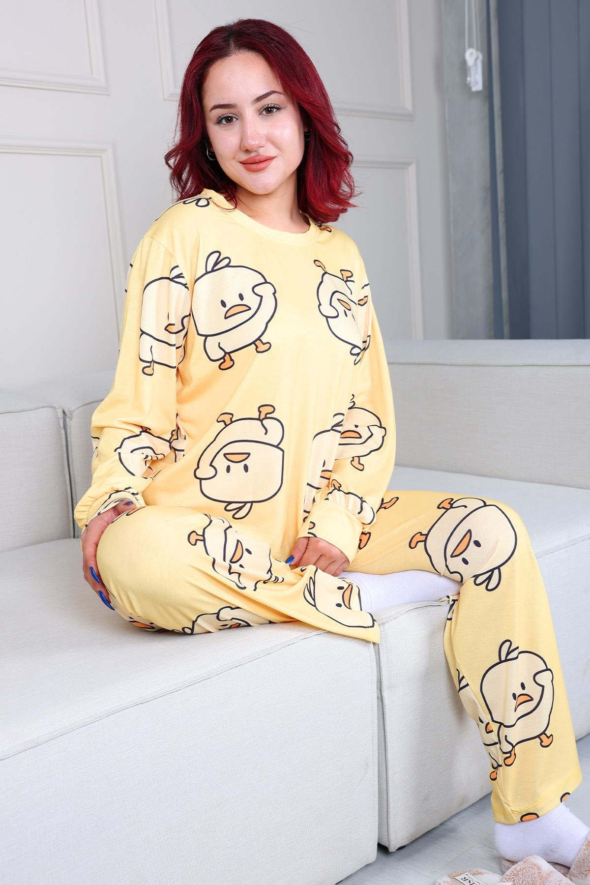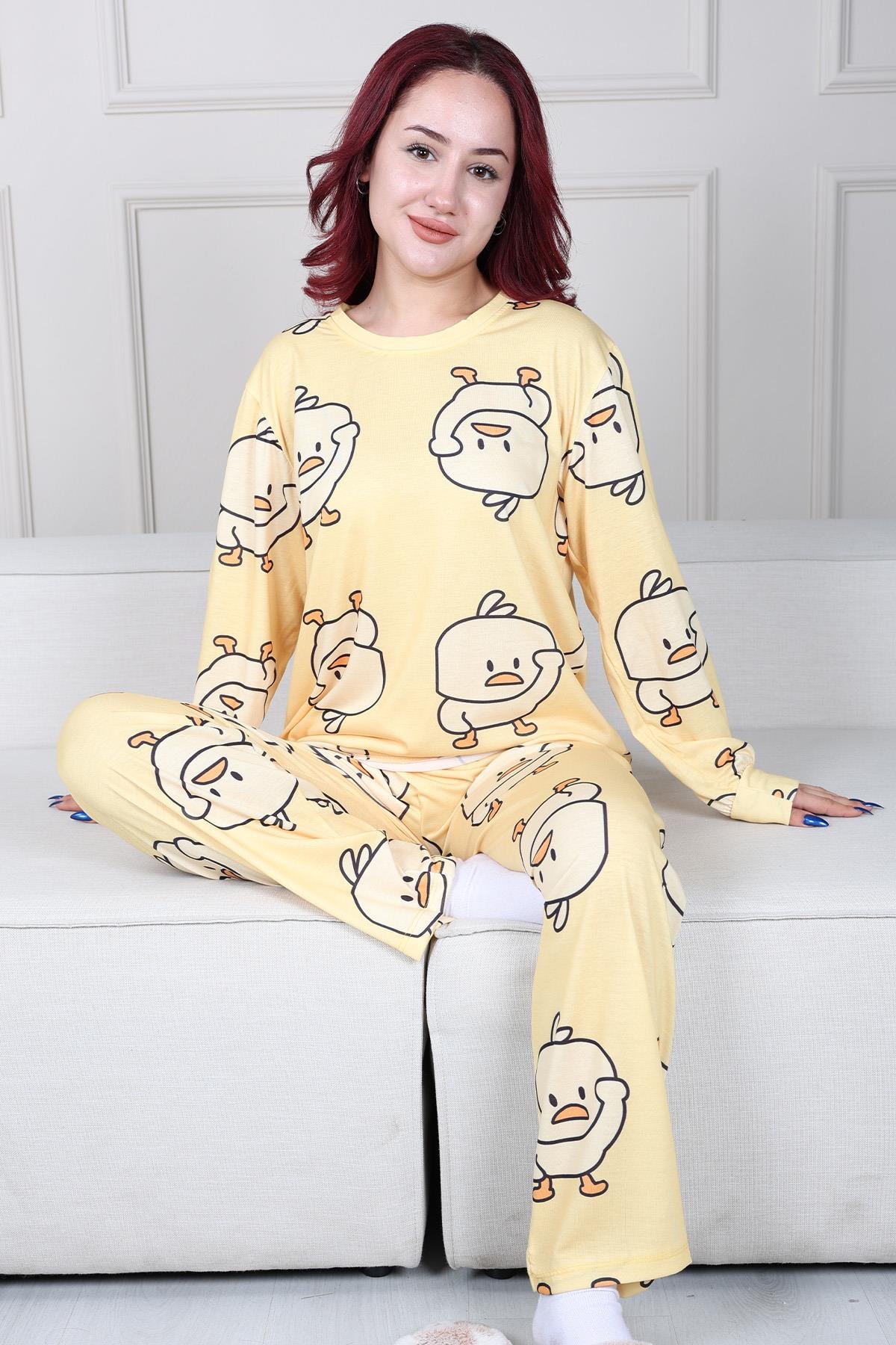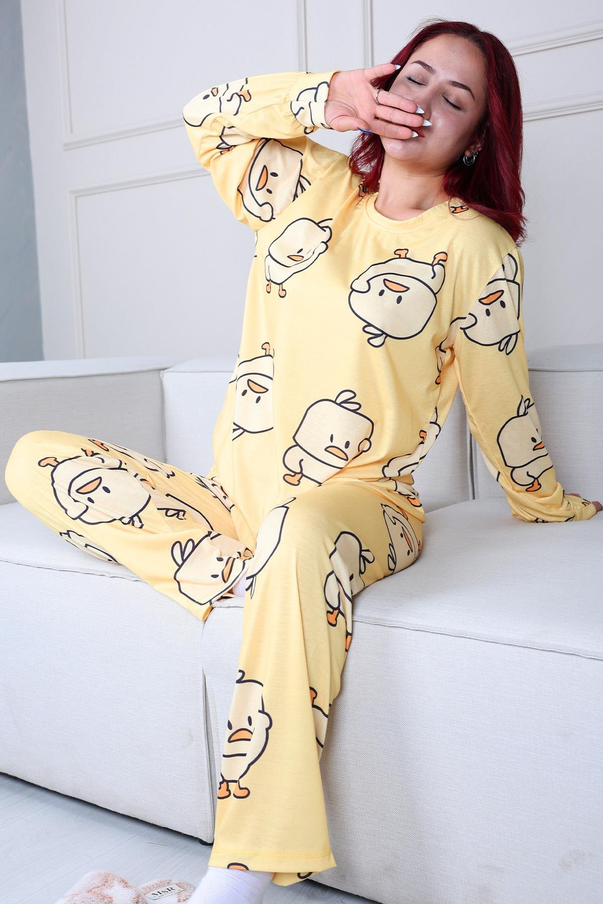 Niketlife Home Wear's cute and comfortable Duck Patterned Long Sleeve Pajama Set brings together the energy of yellow with cheerful duck patterns. Its soft fabric and long-sleeved design keeps you warm on cool days, while offering a comfortable and fun style at home with its sweet duck patterns. A perfect choice for those looking for both elegance and comfort!