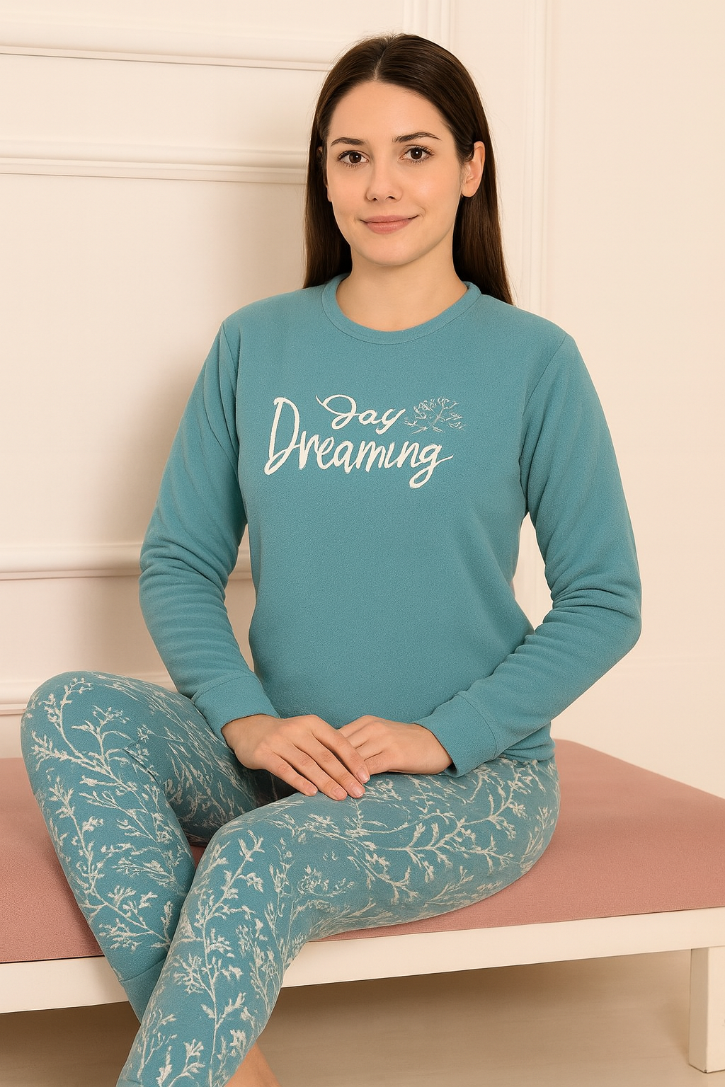 Kadın Day Dreaming Sloganlı Altı Sarmaşık Desenli Termal Pijama Takımı (N.LIFE-11500)